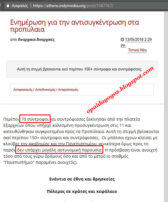 - σε όσους ήταν στο Σύνταγμα ομοίως έλεγε να ΜΗΝ κινηθούν προς τα Προπύλαια και ότι η συγκέντρωση ακυρώθηκε λόγω των αναρχικών.